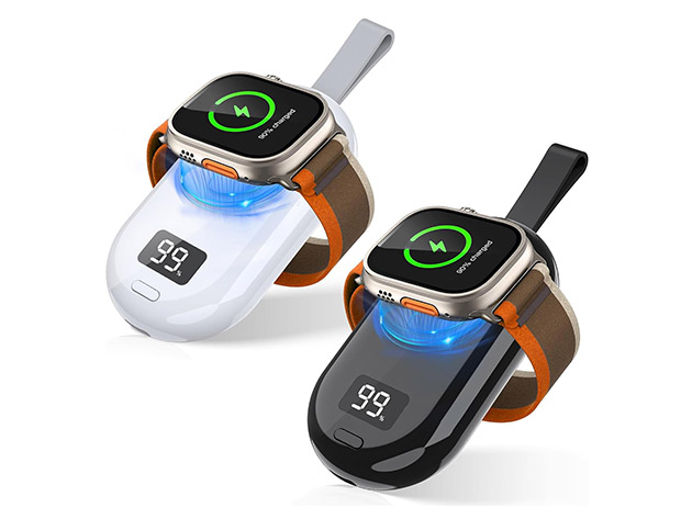 2-in-1 Keychain Wireless Charger with 2,500mAh battery. Efficiently charge your Apple Watch 3-5 times. Magnetic design ensures perfect alignment.