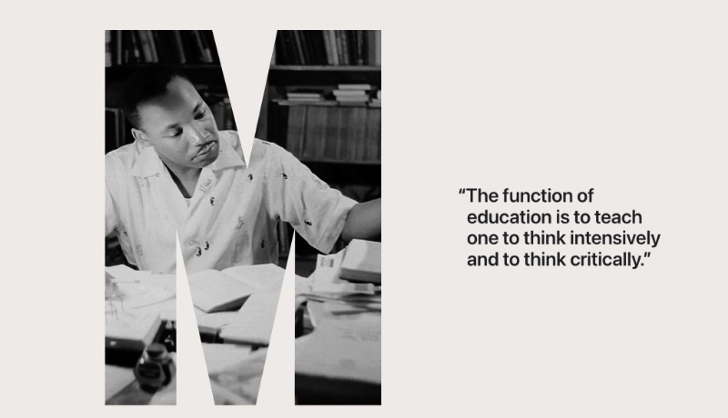 Today is Martin Luther King Jr. Day in the United States, and the home page of Apple’s website is honoring Dr. Martin Luther King Jr. The page includes some of King’s well-known quotes, and includes a link to explore his legacy further, through the Apple Books and Apple News apps.