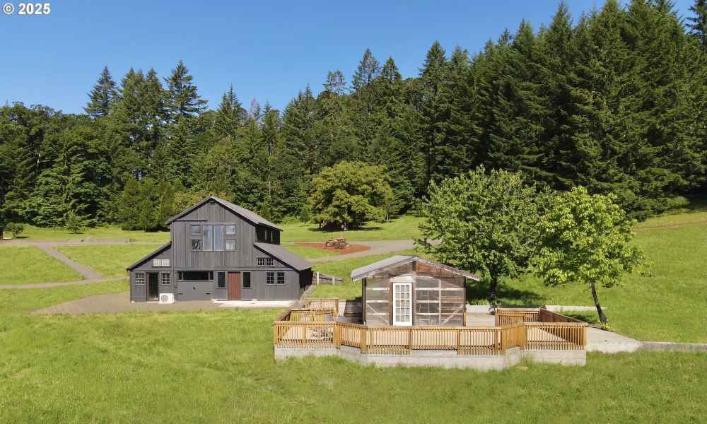 The listing on the Windermere realtor site lists 387 acres spread among five parcels, and the deal also includes a 4-bedroom and 2.5-bathroom 5,260 square foot main house. The farm, located outside of McMinnville, also comes with a large barn with a ballroom floor, a greenhouse, and an outdoor kitchen.