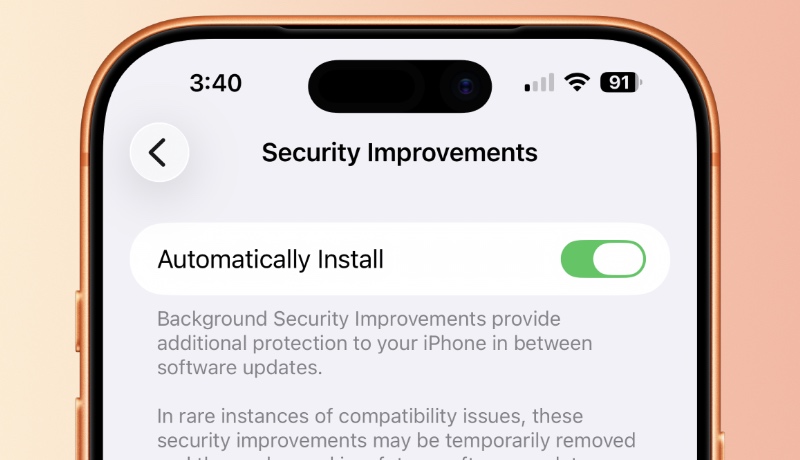 Apple warns that Background Security Updates can result in “rare instances of compatibility issues.” In that case, Background Security Improvements may be temporarily removed and then enhanced in a subsequent software update.