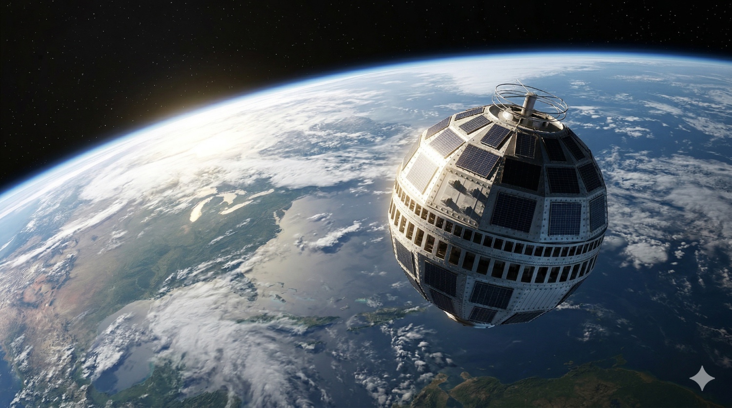 Google Gemini-generated image of the Telstar satellite in orbit.