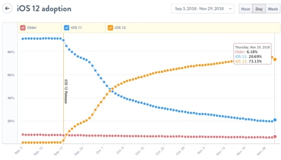 iOS 12 Adoption Rate Nearing 75%, Beating iOS 11 Upgrade Rate
